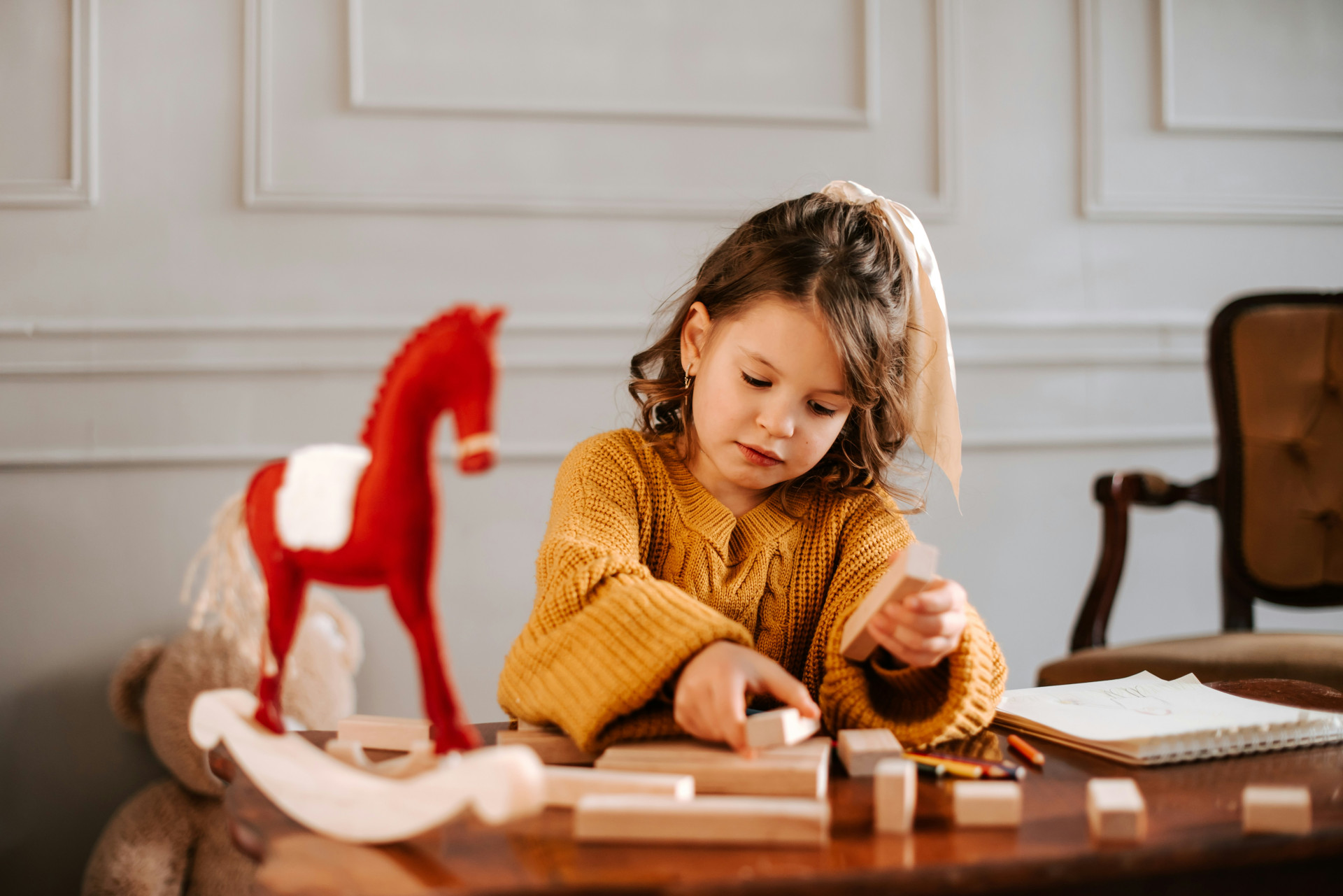 - Stabletårne og klodser – træner både finmotorik og forståelse for tyngdepunkt. Barnet opdager, at høje tårne kræver stabilt fundament, og at tunge klodser påvirker balancen.